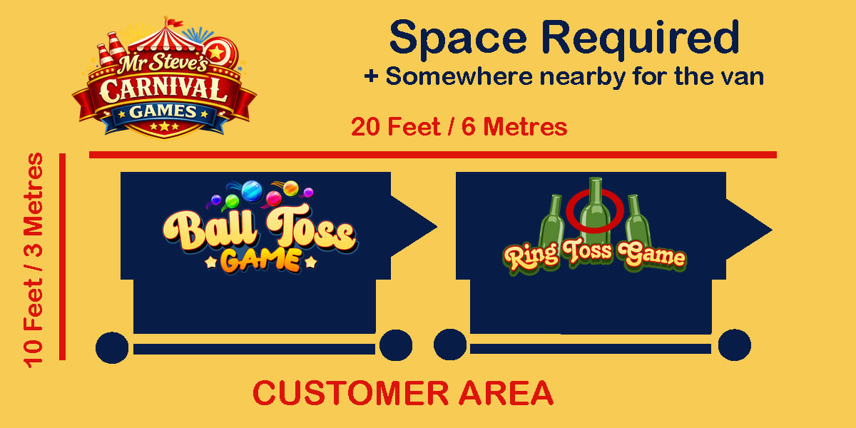 Because of this, the best placement for our games is in busy areas with plenty of passing foot traffic. We work best positioned along main walkways, particularly around and facing the arena or within a line of stalls where people naturally walk past. It’s important that visitors can easily spot and are walking directly past the front of the stalls without having to walk out of their way.
